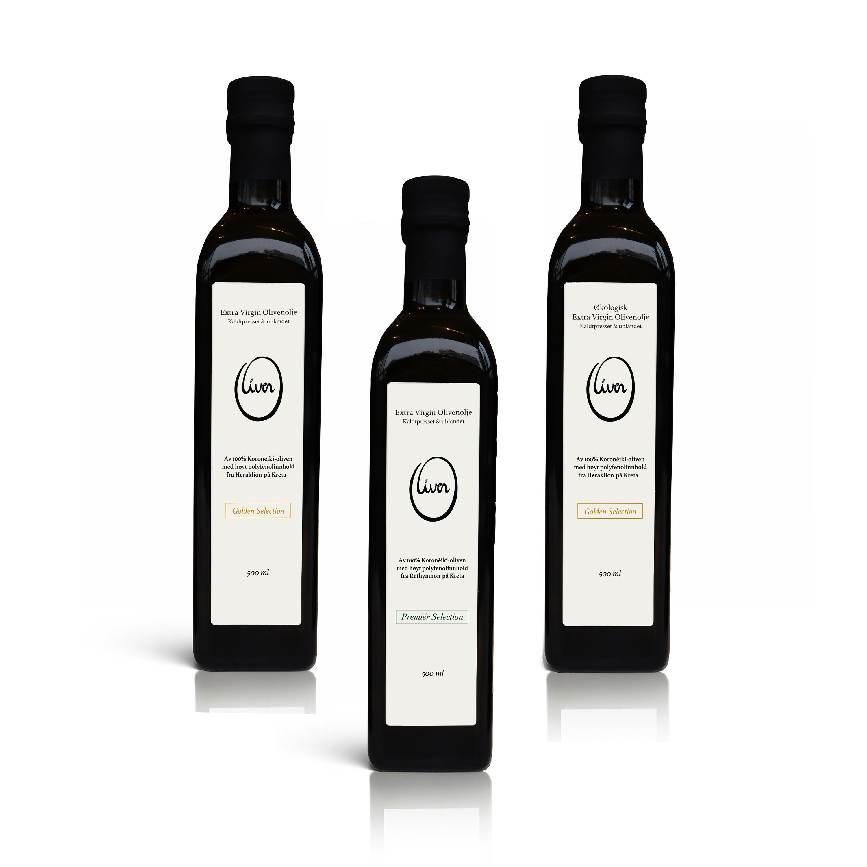 TRIO-Oliven 3 x 500ml: Premiér Selection + Golden Selection + Golden Økologisk